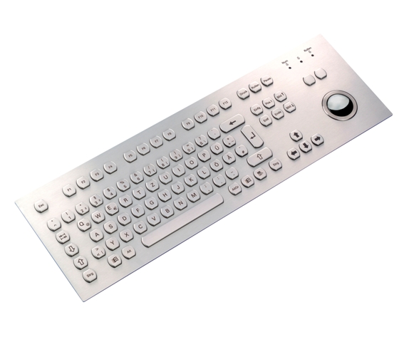 Vandal resistant stainless steel keyboard with integrated 38 mm stainless steel trackball in module frontpanel