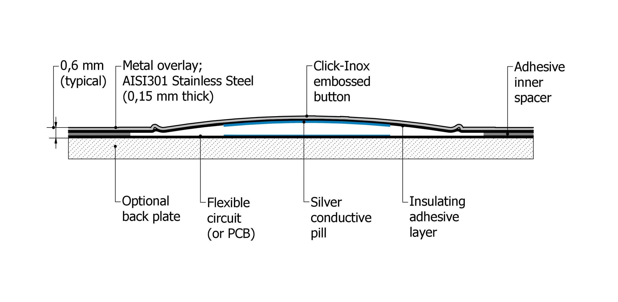 | Schalttechnologie | Click-Inox (Edelstahlfolie mit Domprägung) |