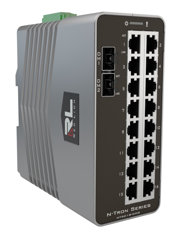 N-TRON 18-Port Gigabit Managed Industrial Ethernet Switch (16 10/100/1000 BaseT RJ45 Ports & 2 Dual Mode 100/1000Base SFP Expansion Slots)